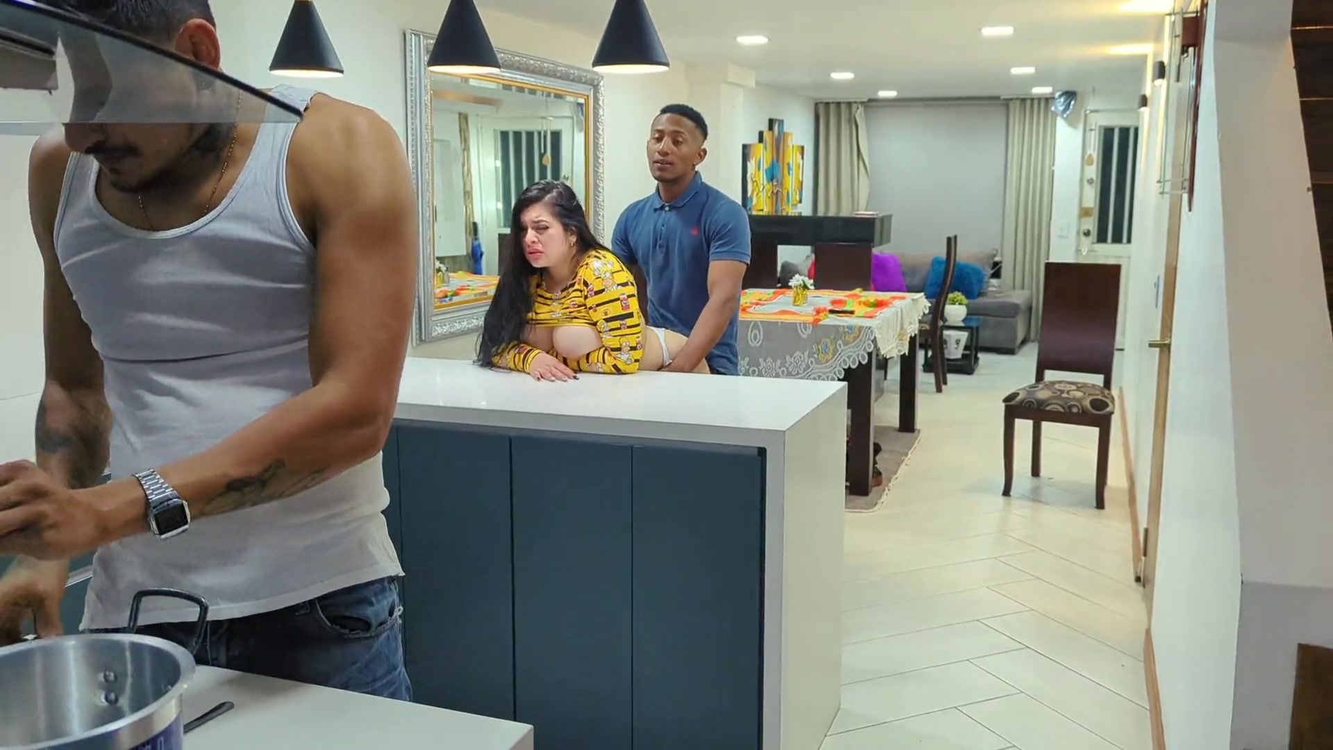 El mejor amigo de mi esposo Rioc nos visita y me folla a escondidas en la cocina